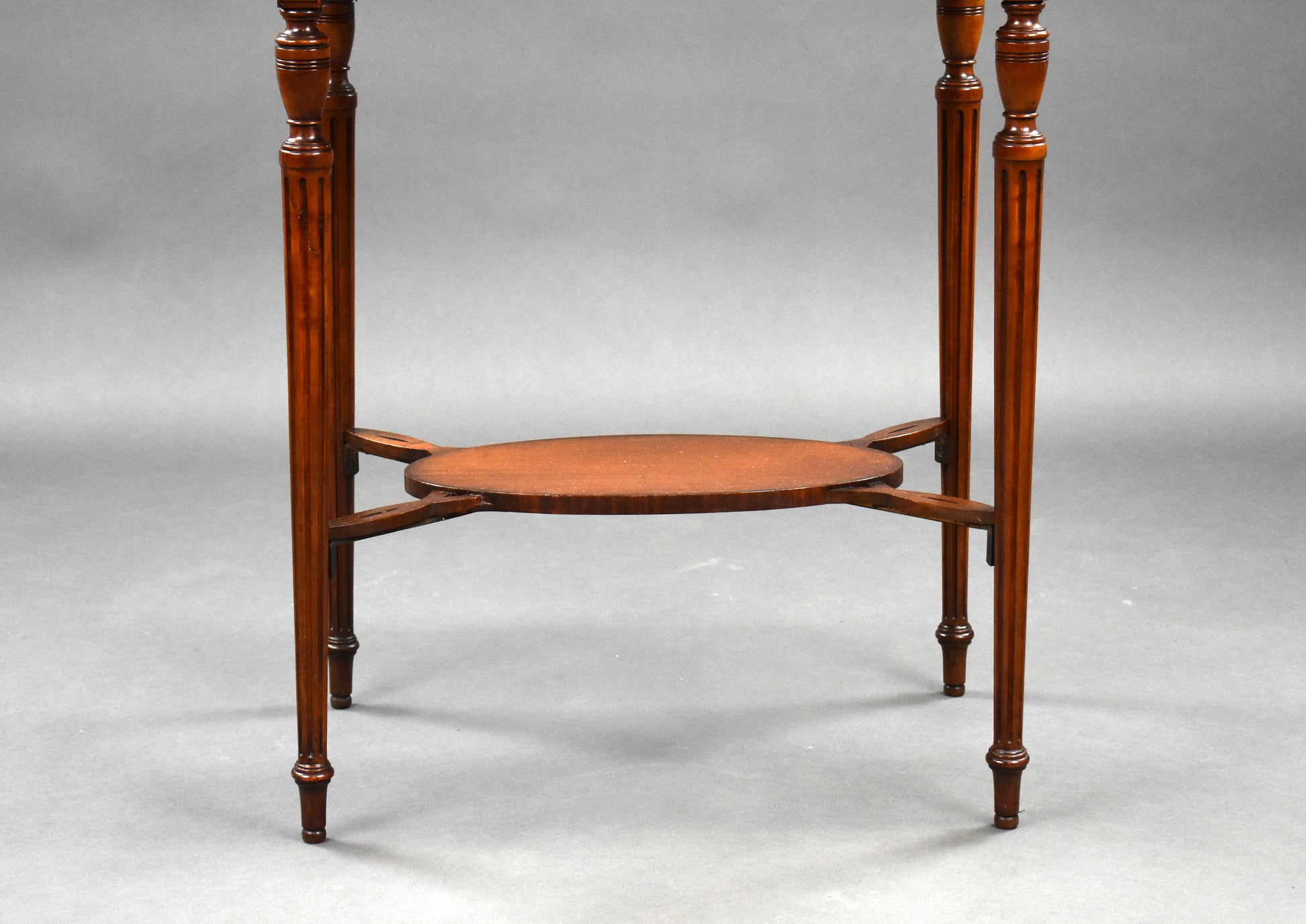 stands on an elegant base with turned tapered legs.