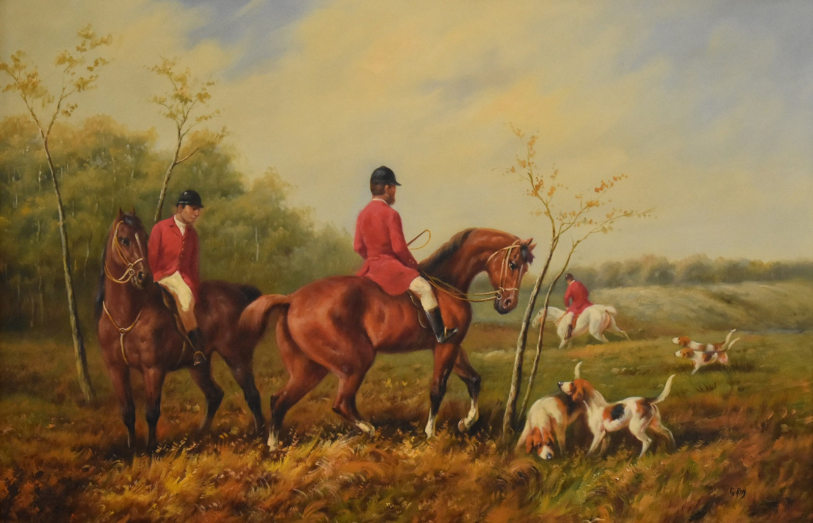Large Huntsman and Hounds Canvas painting by G.Roy