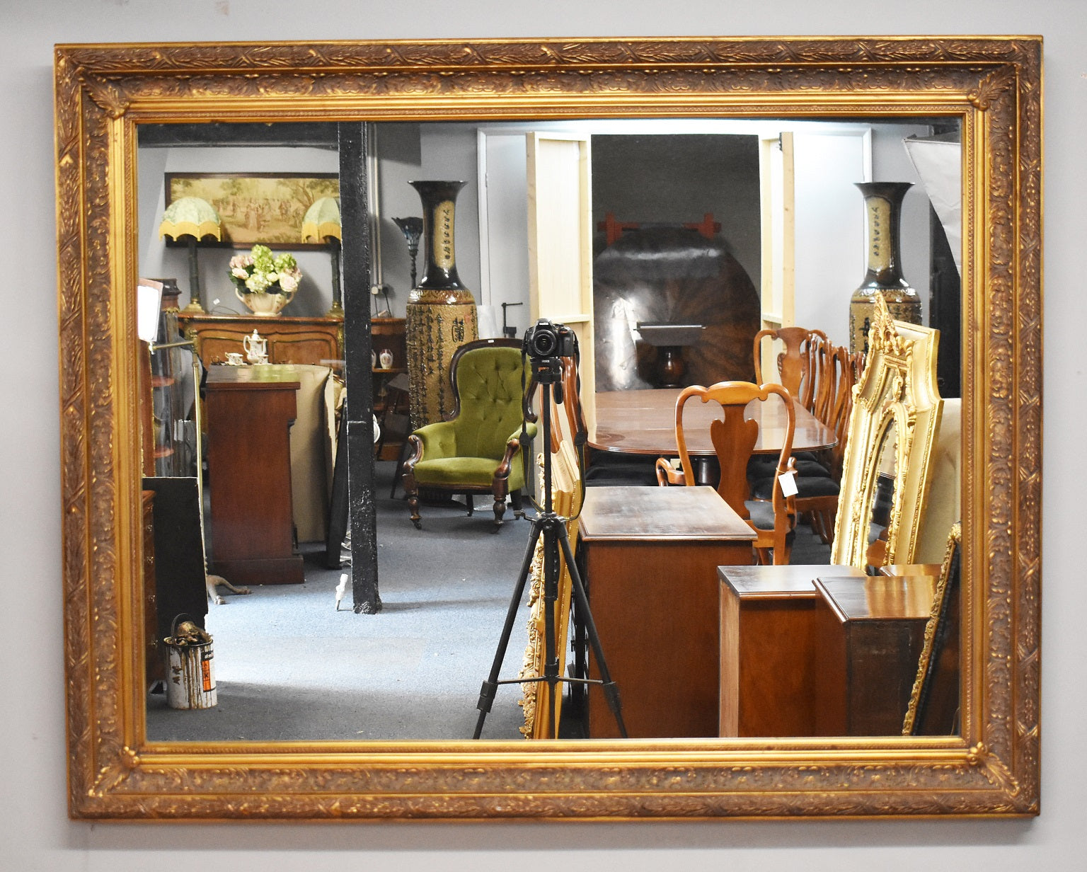 Large ornate gilt framed mirror in good condition. The mirror can be hung either way depending on space.
