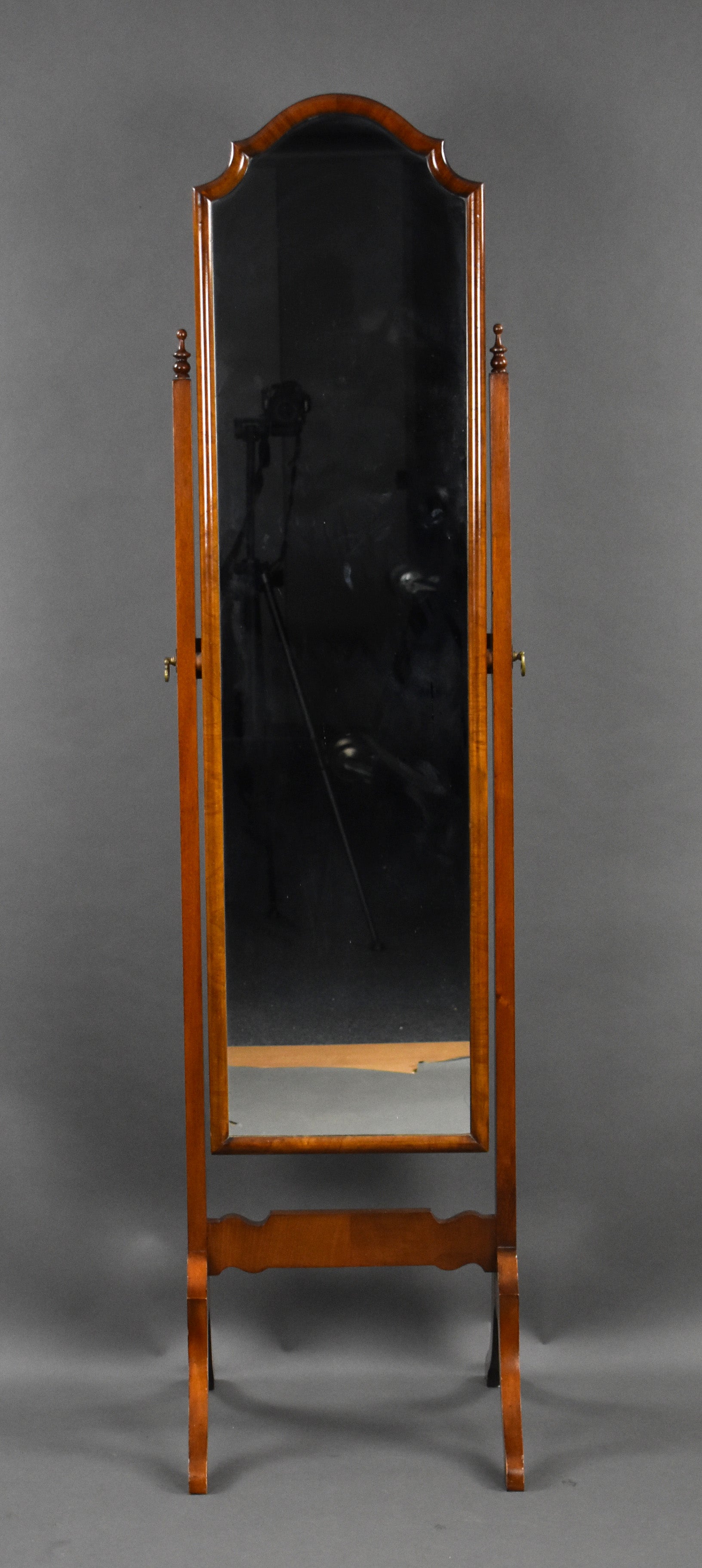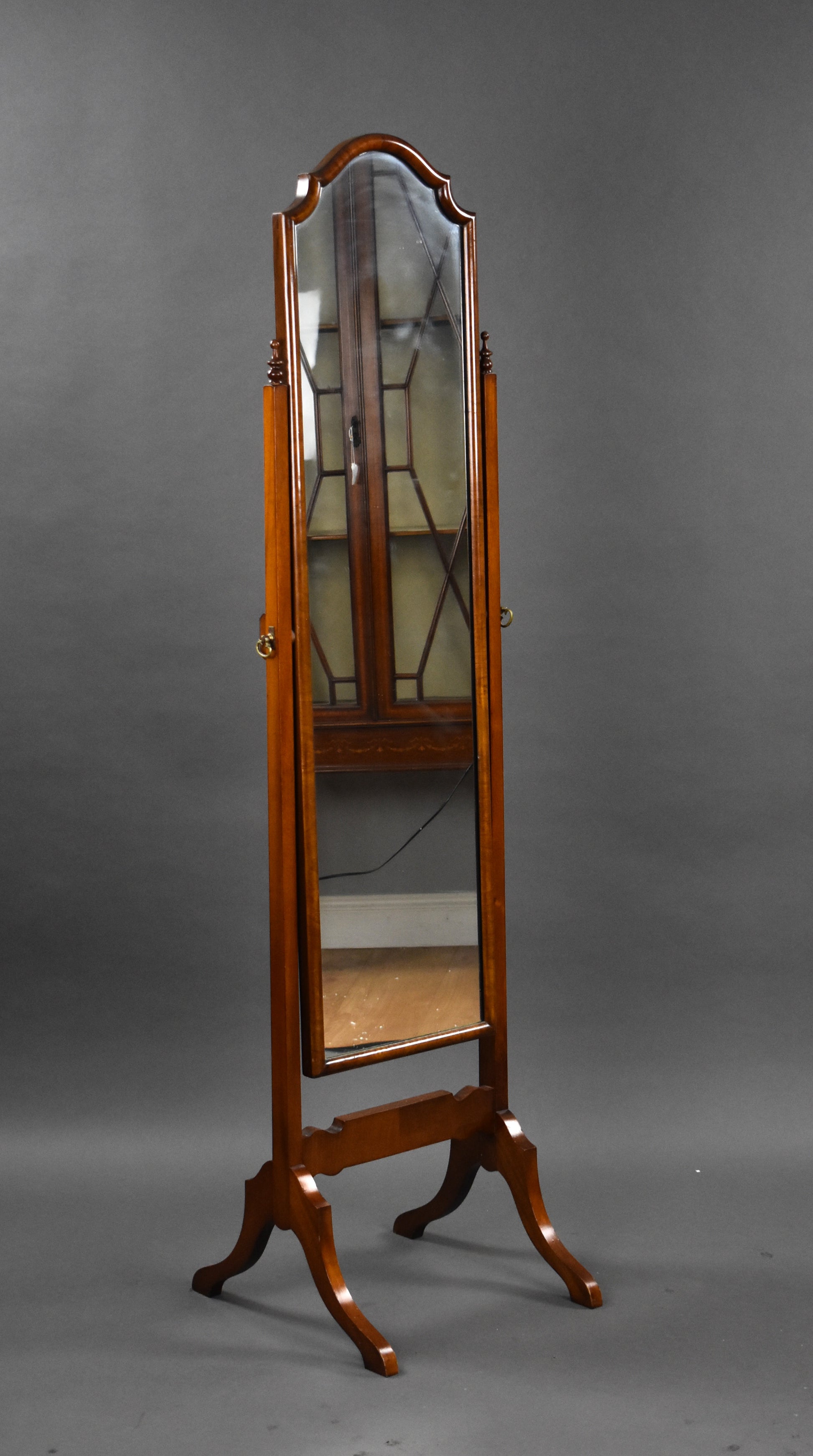 Queen Anne-Style mahogany cheval swing mirror in good condition, the swing mechanism allows you to easily adjust the angle of the mirror.