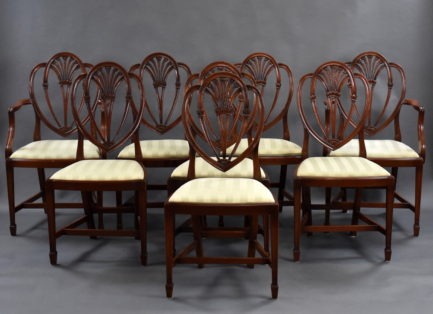 Set of 8 20th Century mahogany dining chairs in good condition comprising of six singles and two carver chairs with drop in seats.