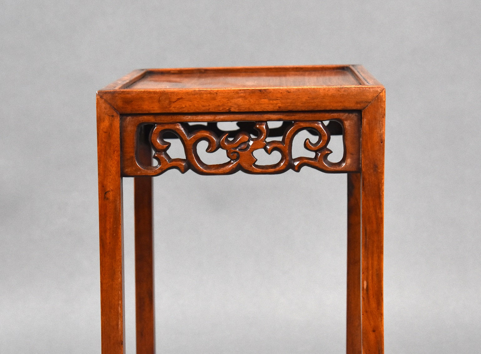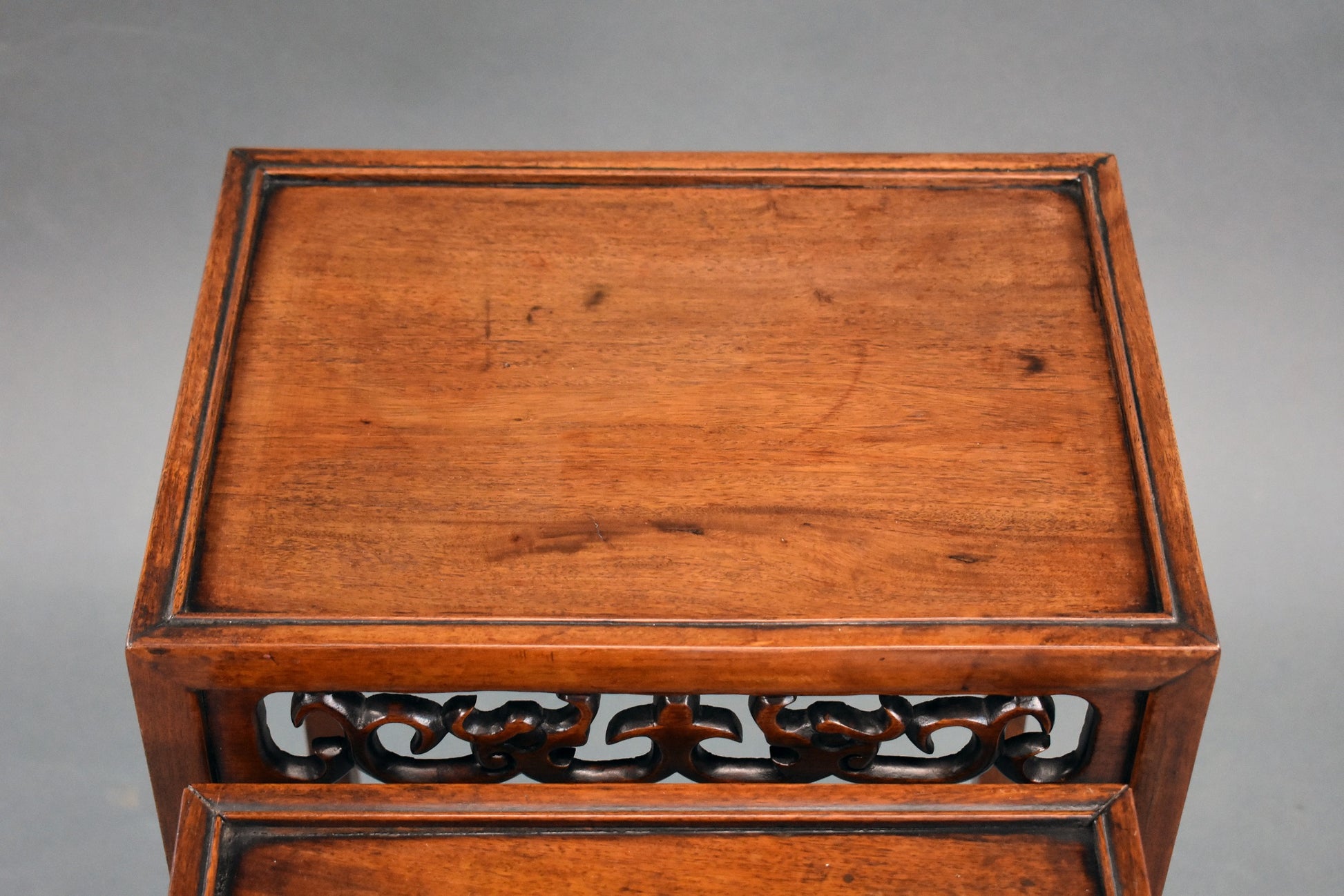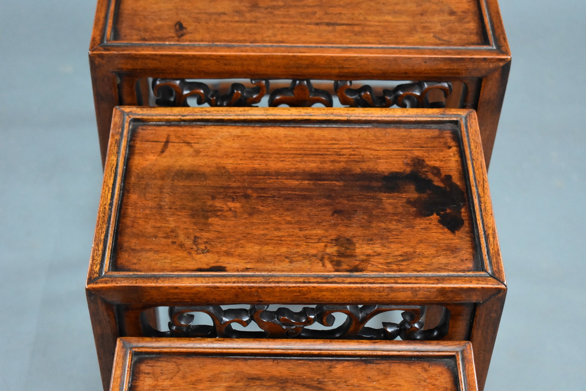 Set of four late 19th Century (c.1890) Chinese antique graduated hardwood nest tables in good condition with intricate carvings to the front and sides.