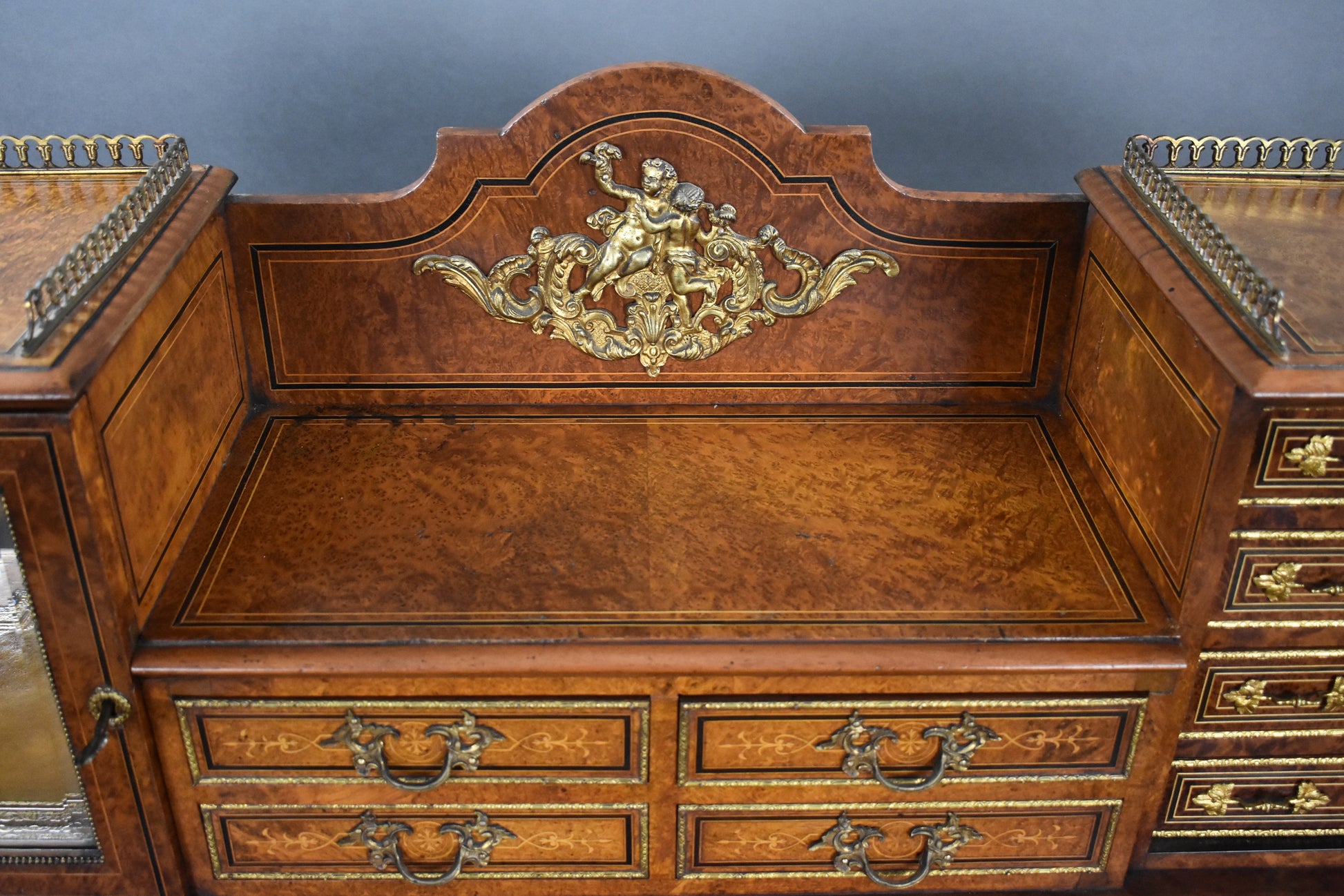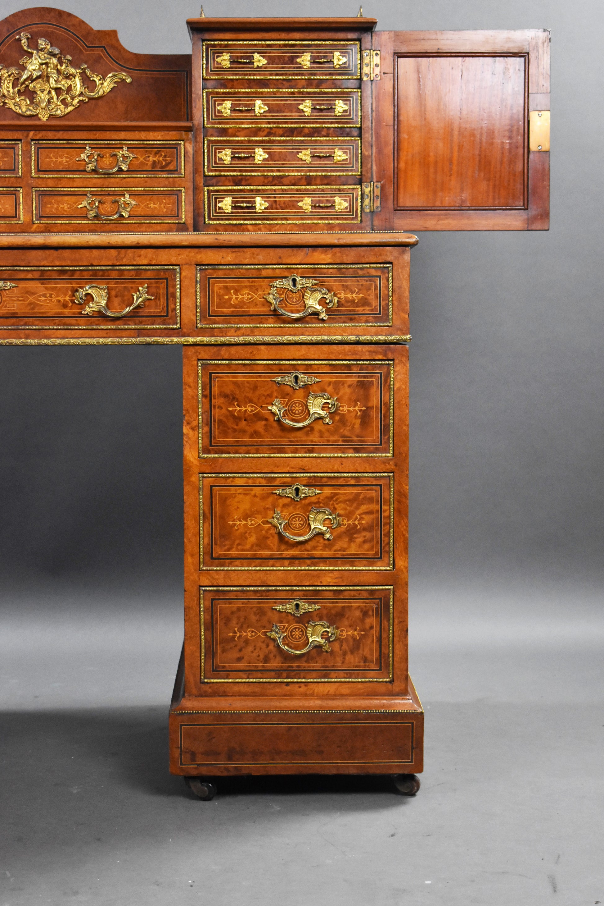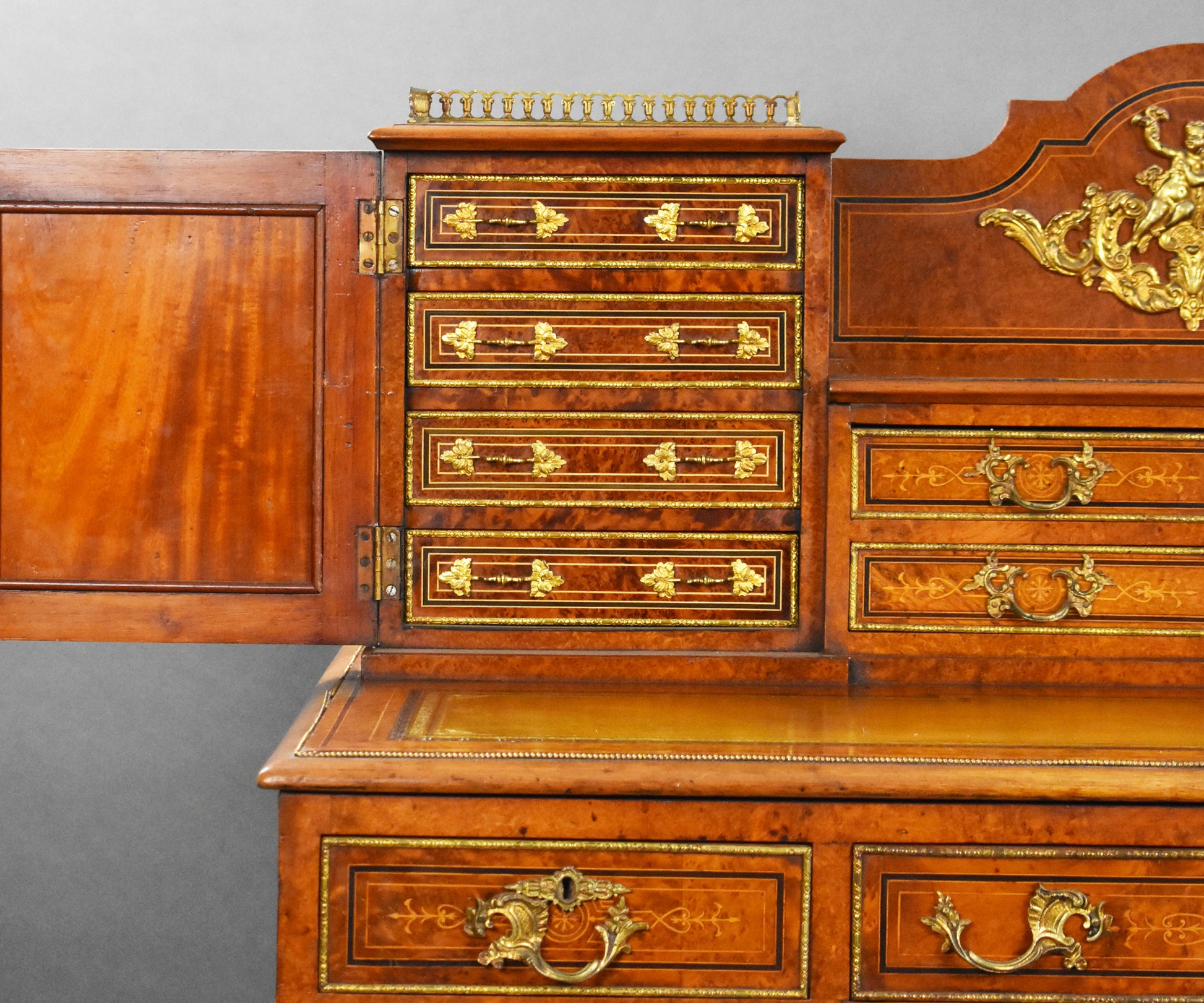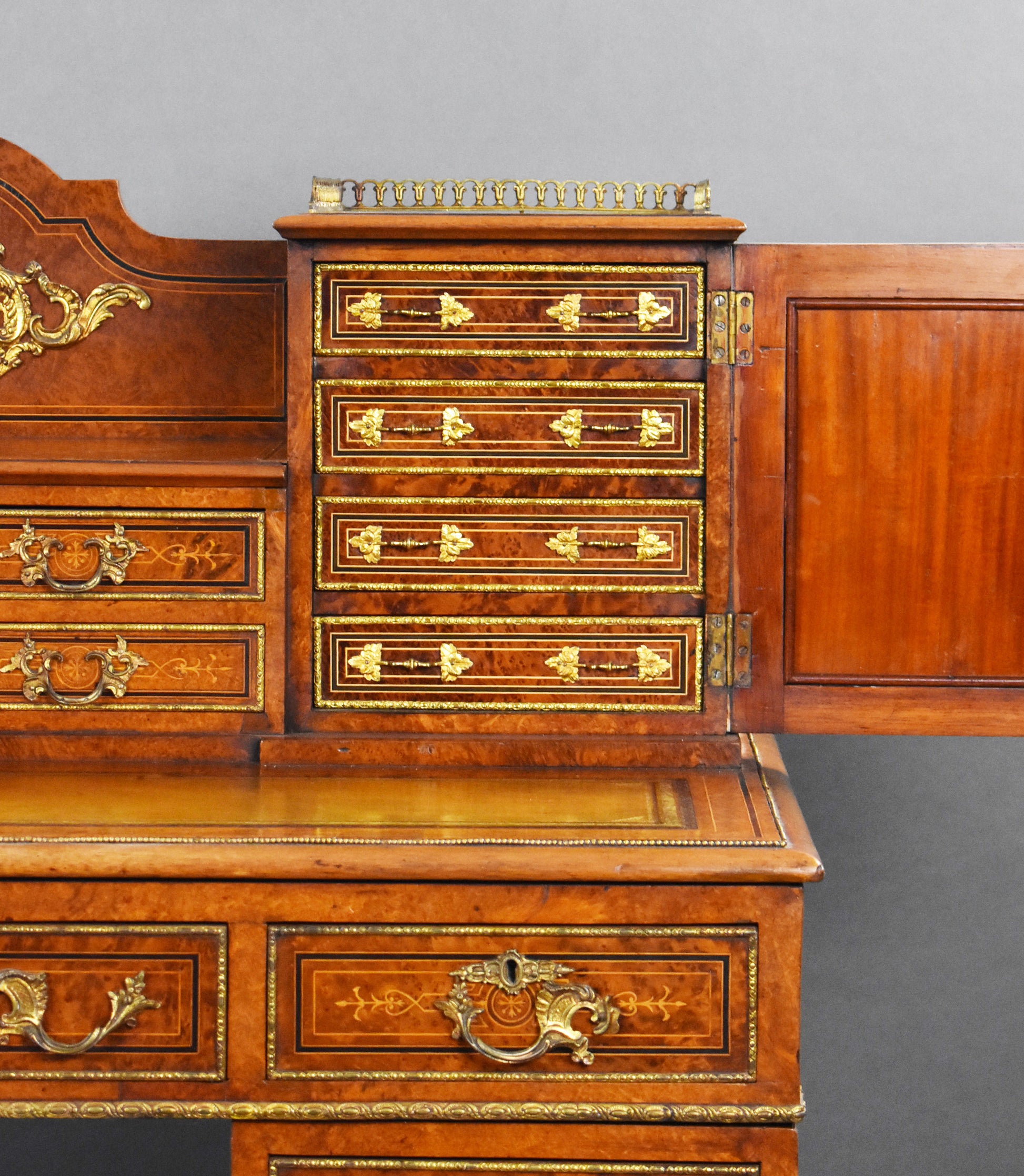 Exceptional Victorian Burr Walnut and Ormolu-Mounted Pedestal Desk with Cabinet Top
