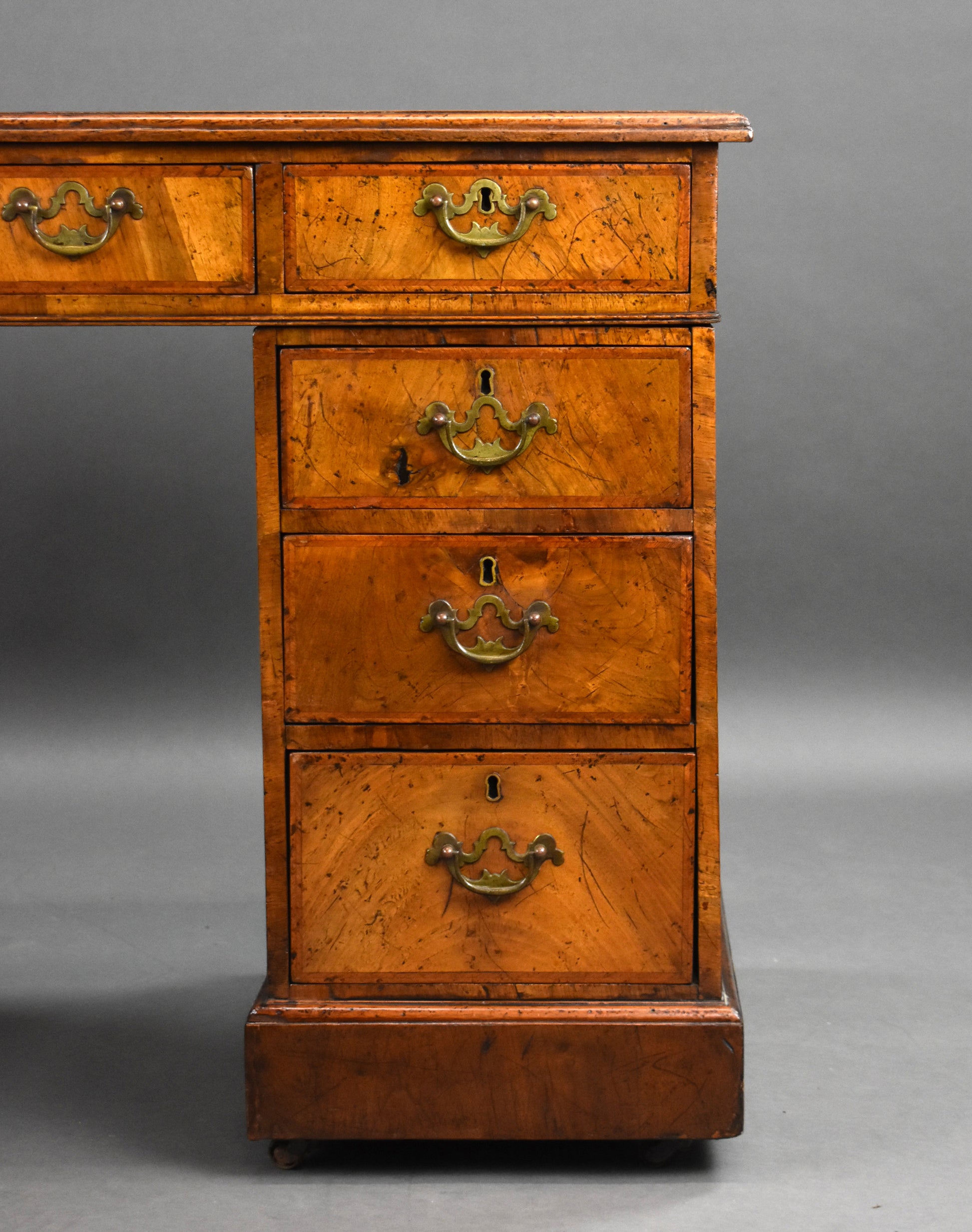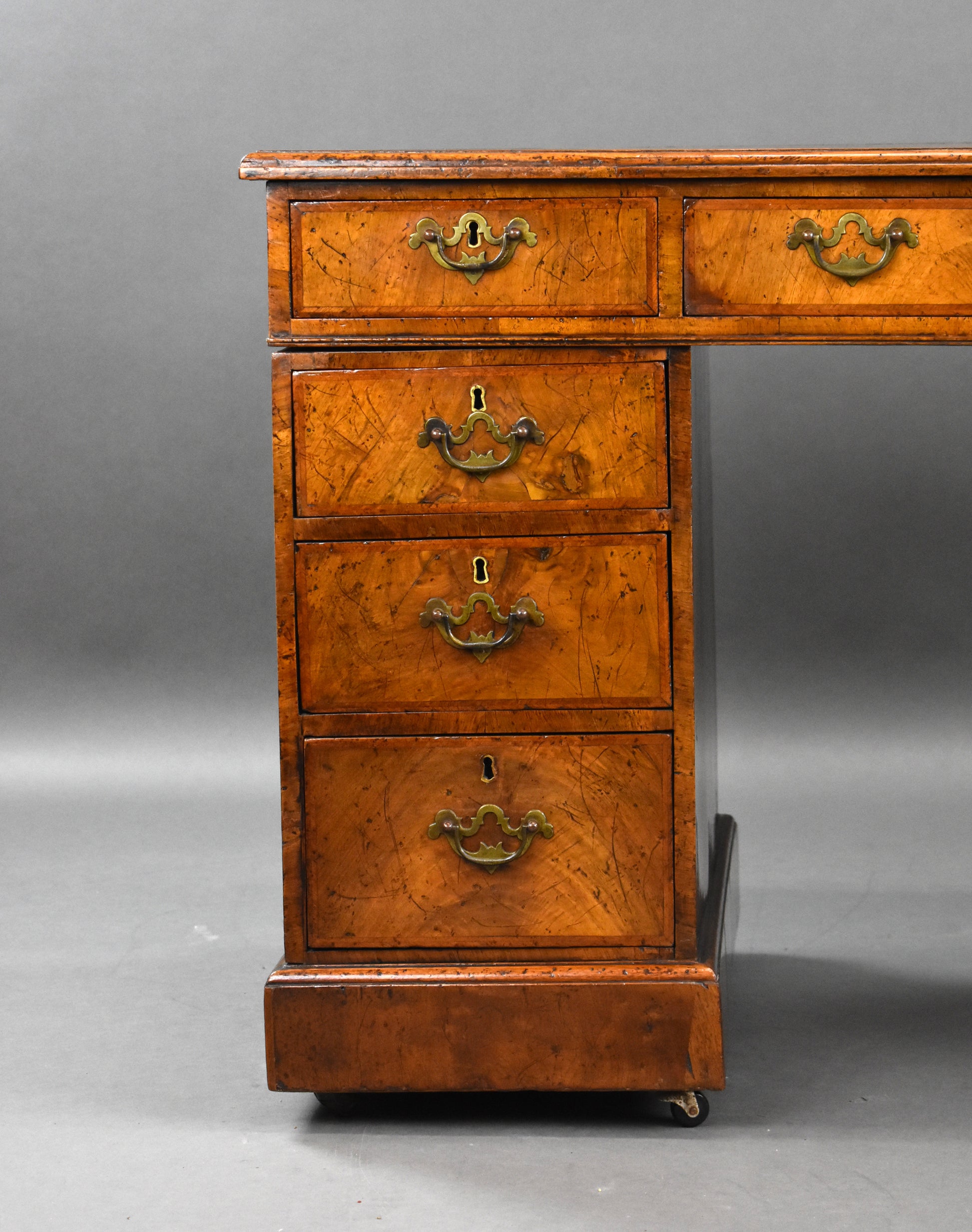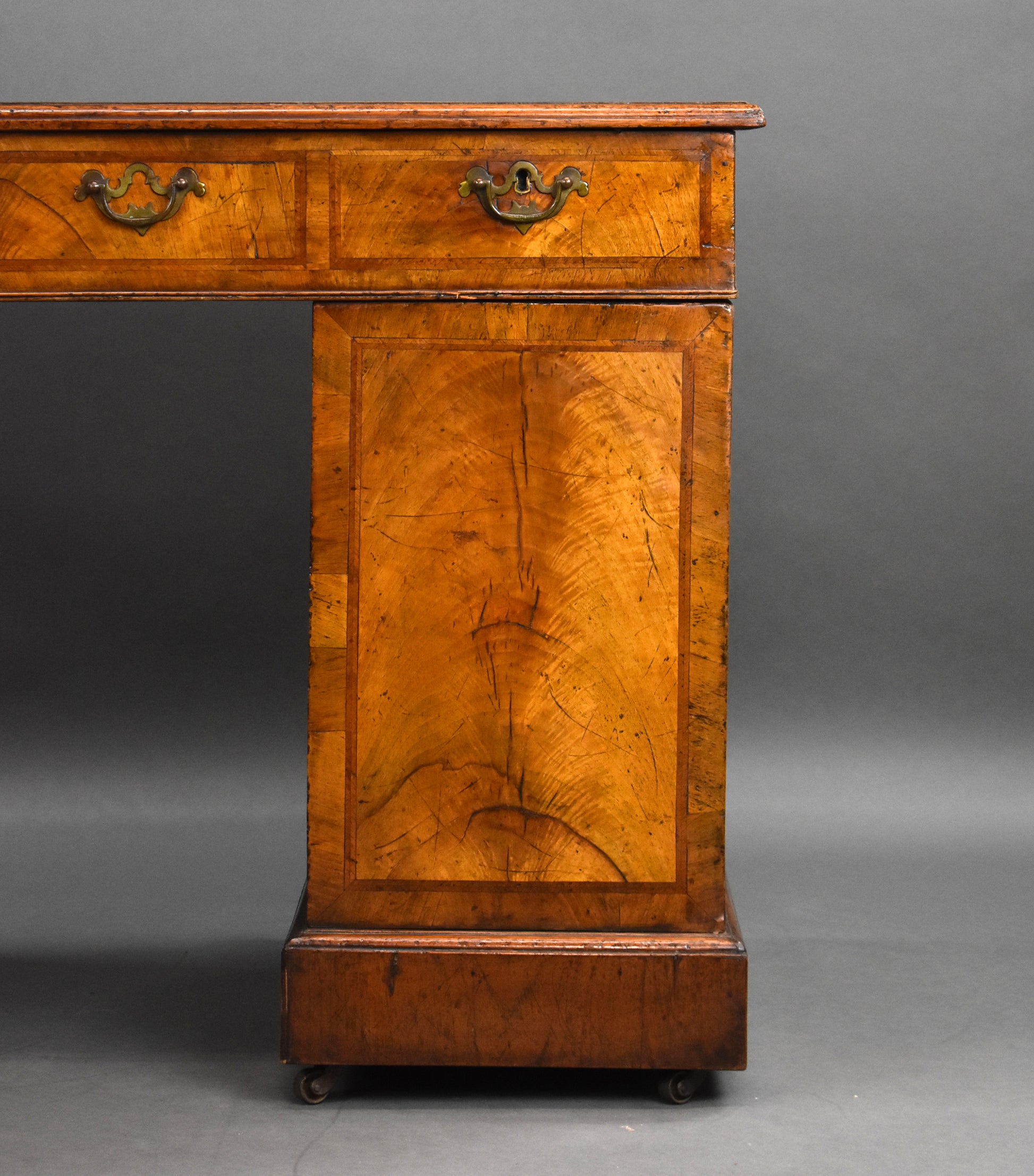 Victorian Figured Walnut Freestanding Pedestal Desk