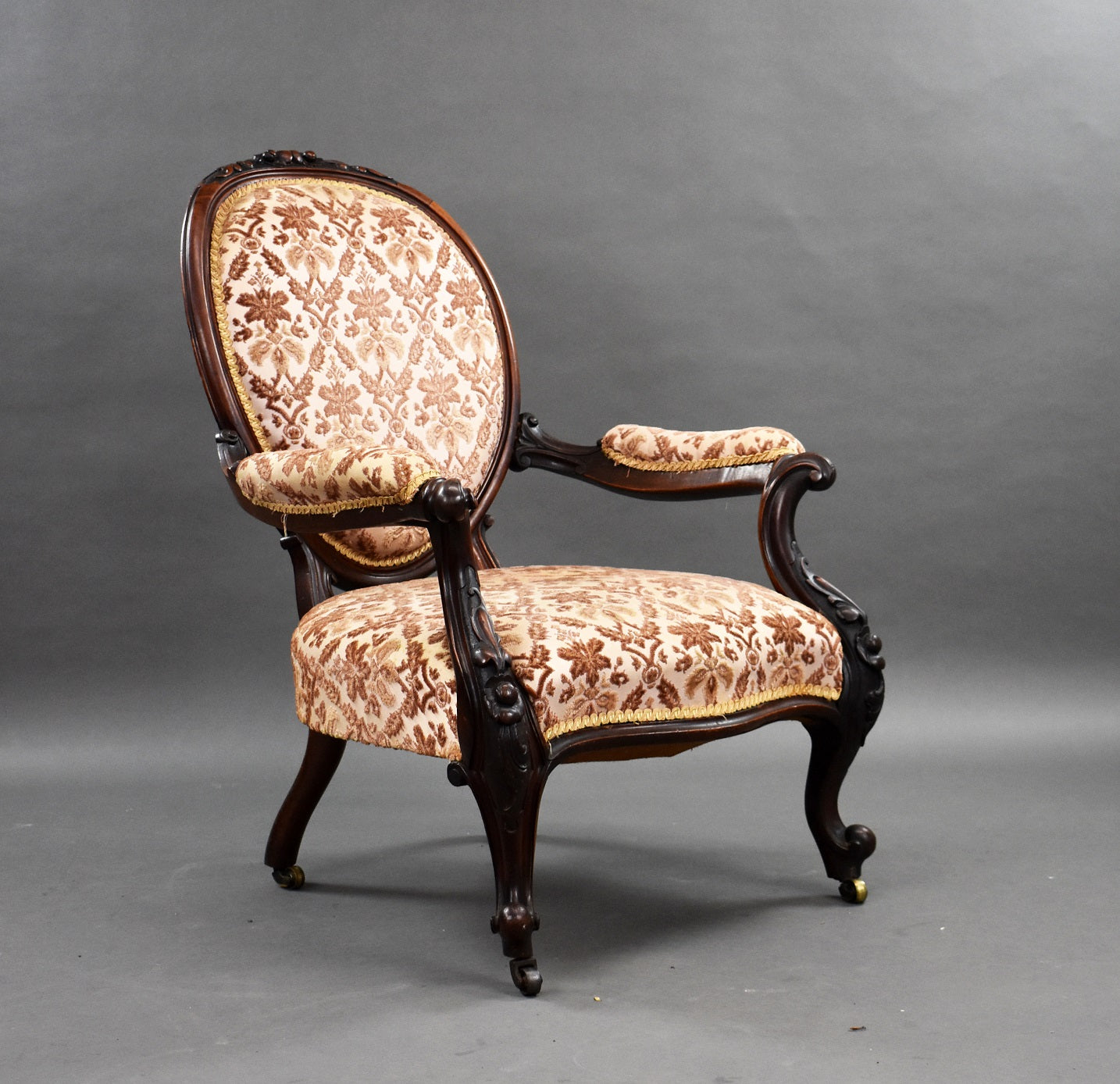 Victorian Mahogany Armchair in good condition standing on cabriol legs.