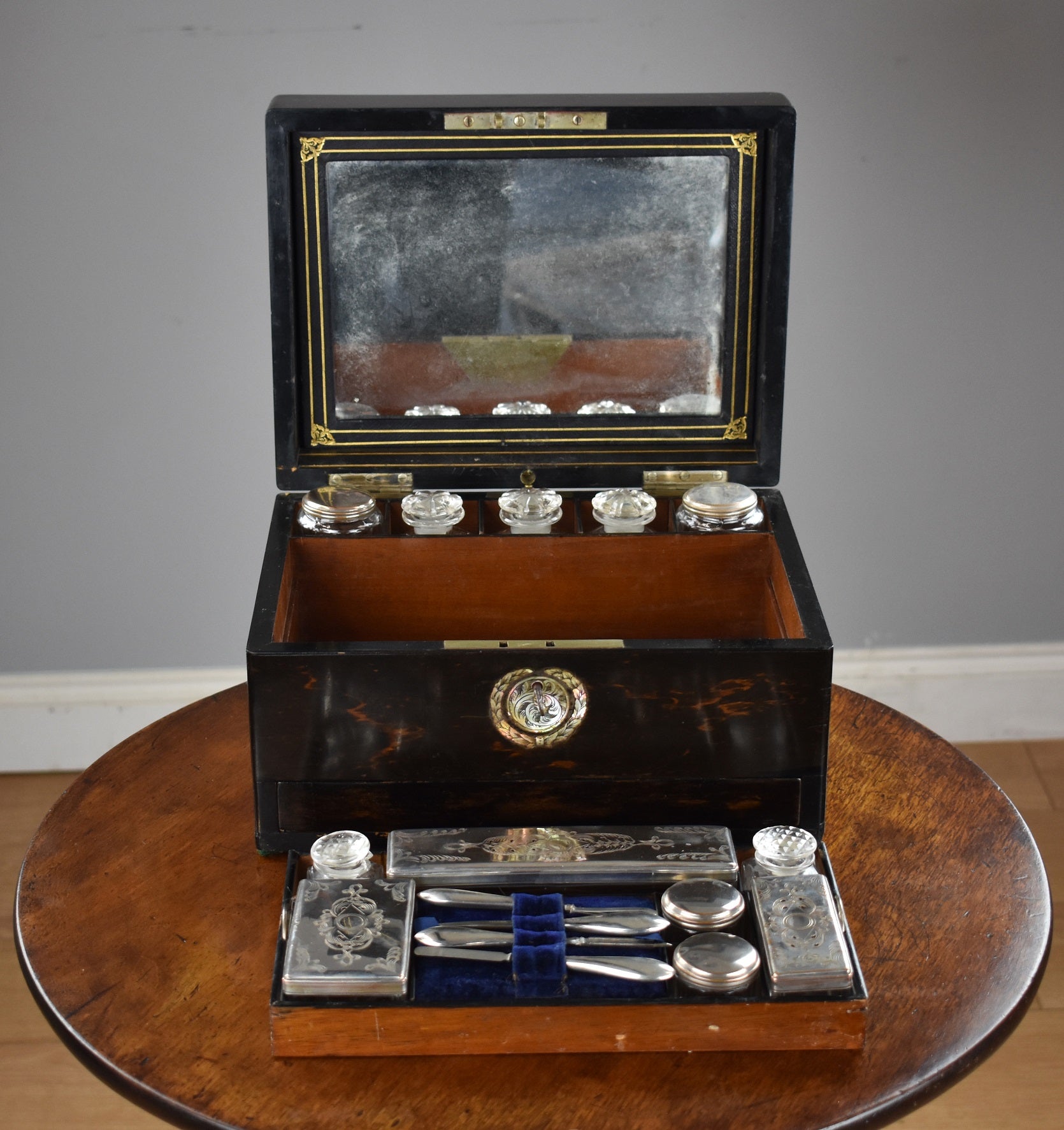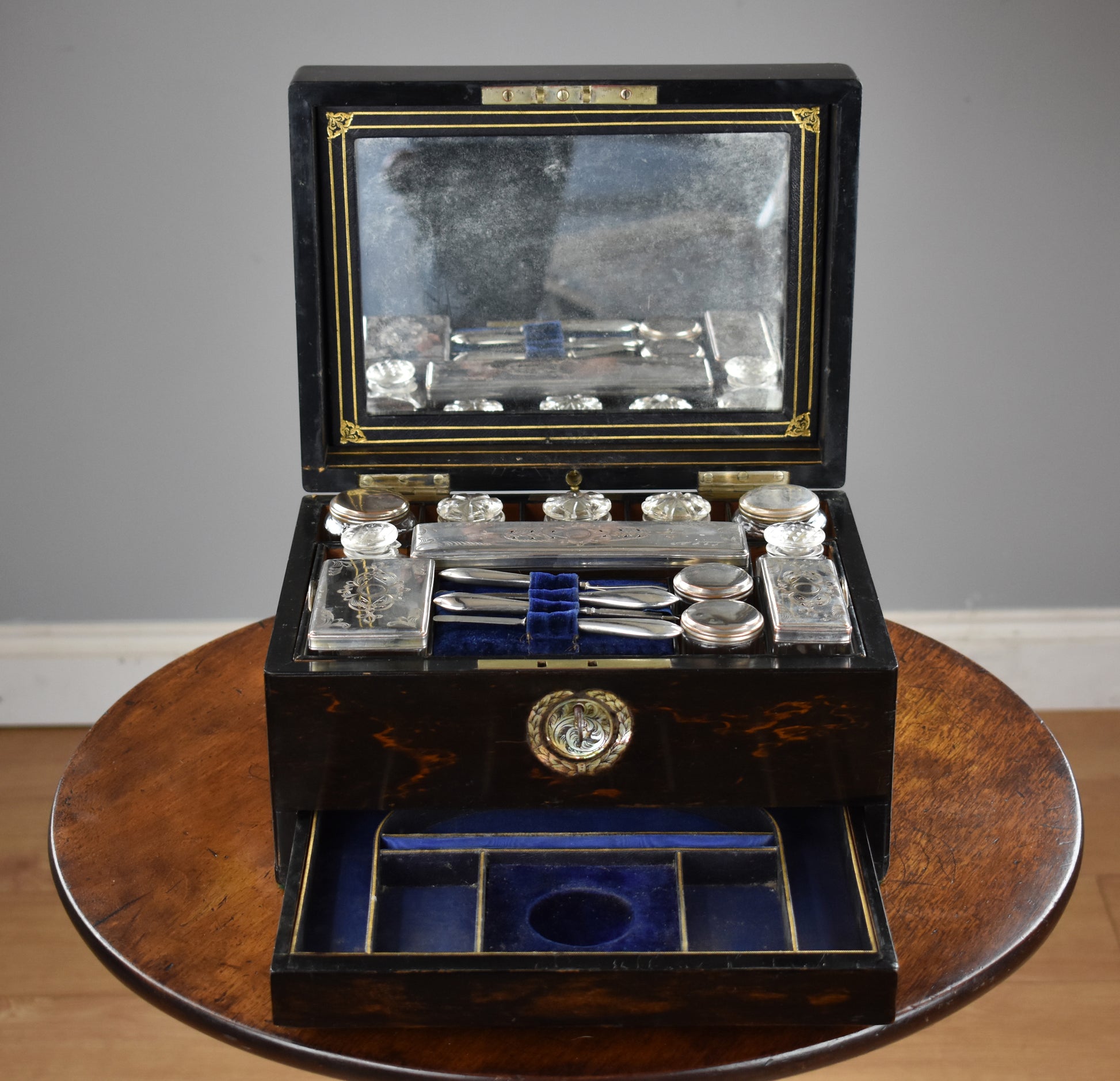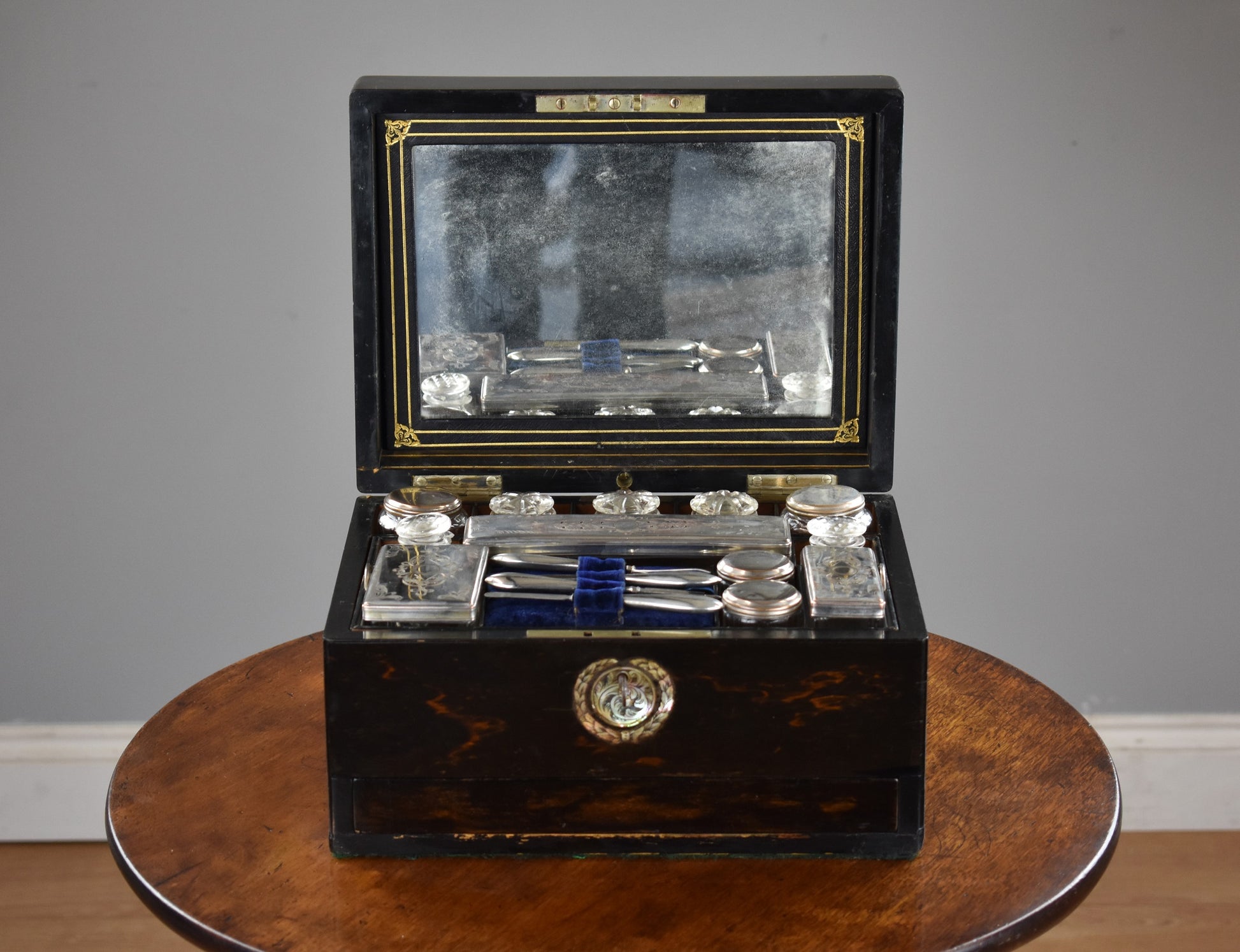 Super example with a suite of wonderful storage and complete vanity items. Displays a desirable aged patina and in good order throughout.