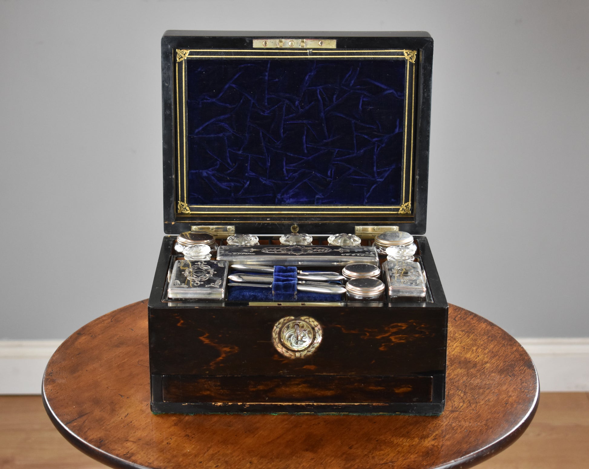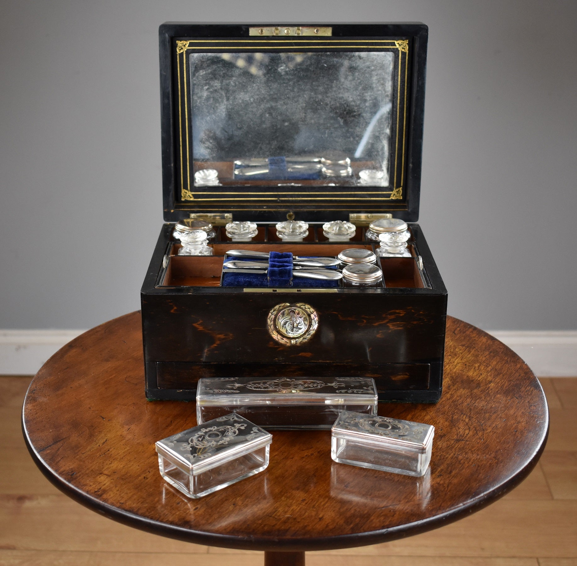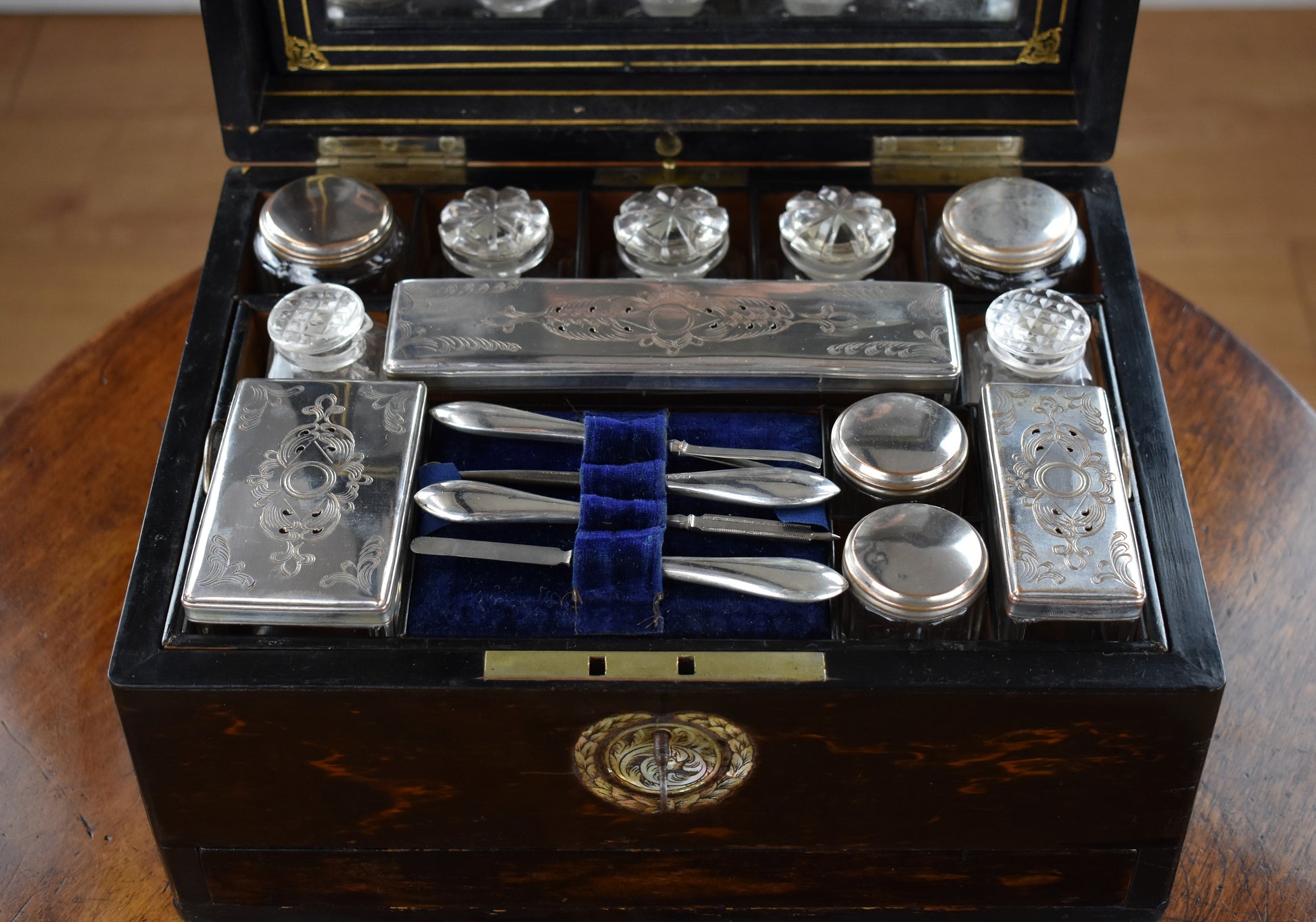 Super example with a suite of wonderful storage and complete vanity items. Displays a desirable aged patina and in good order throughout.