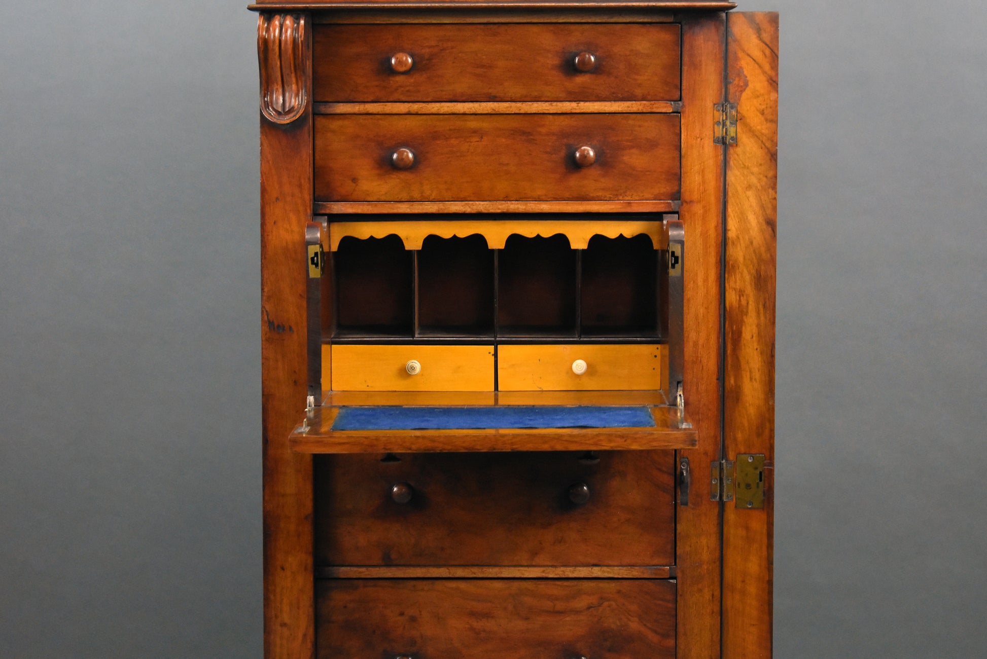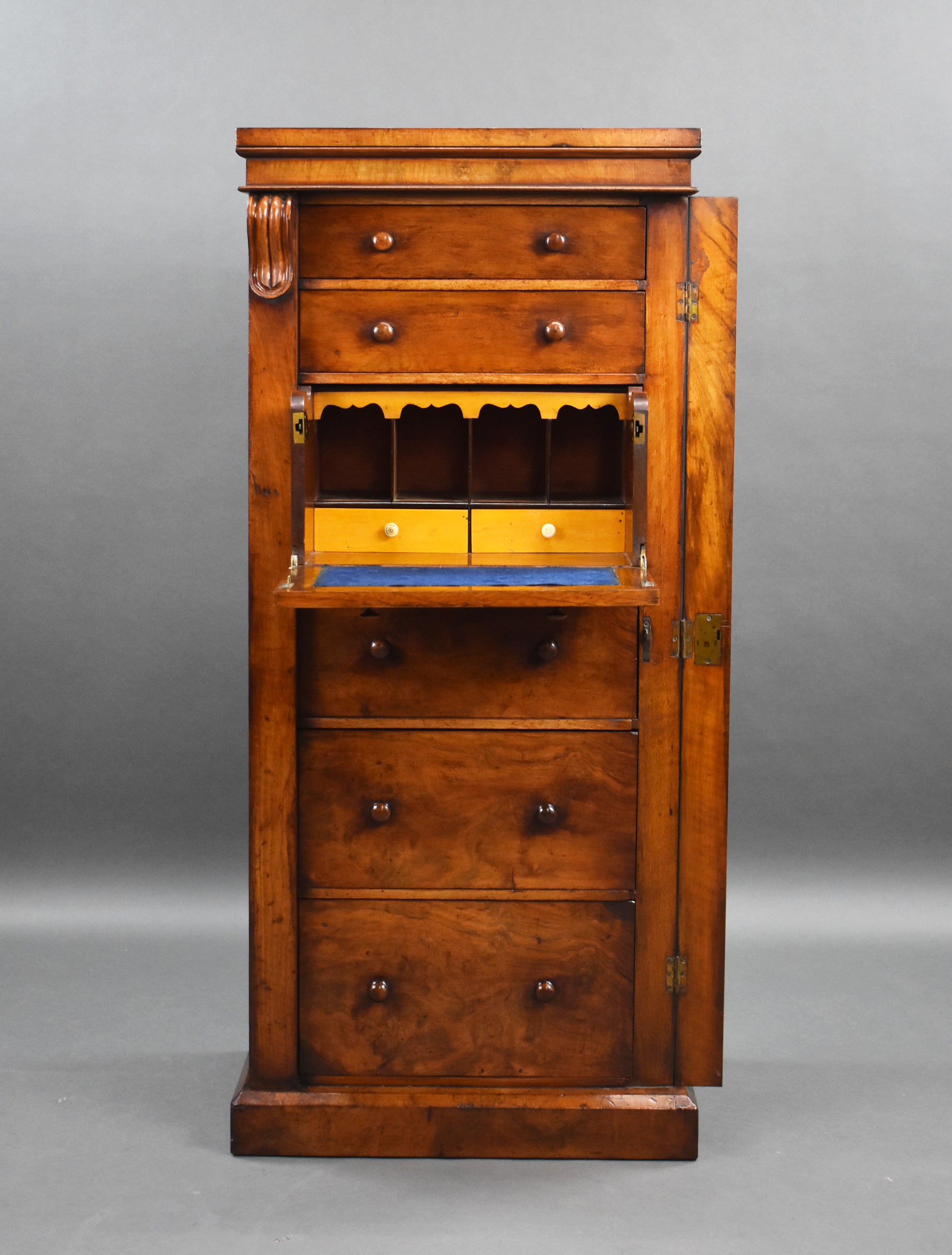 Victorian Walnut Secretaire Wellington Chest